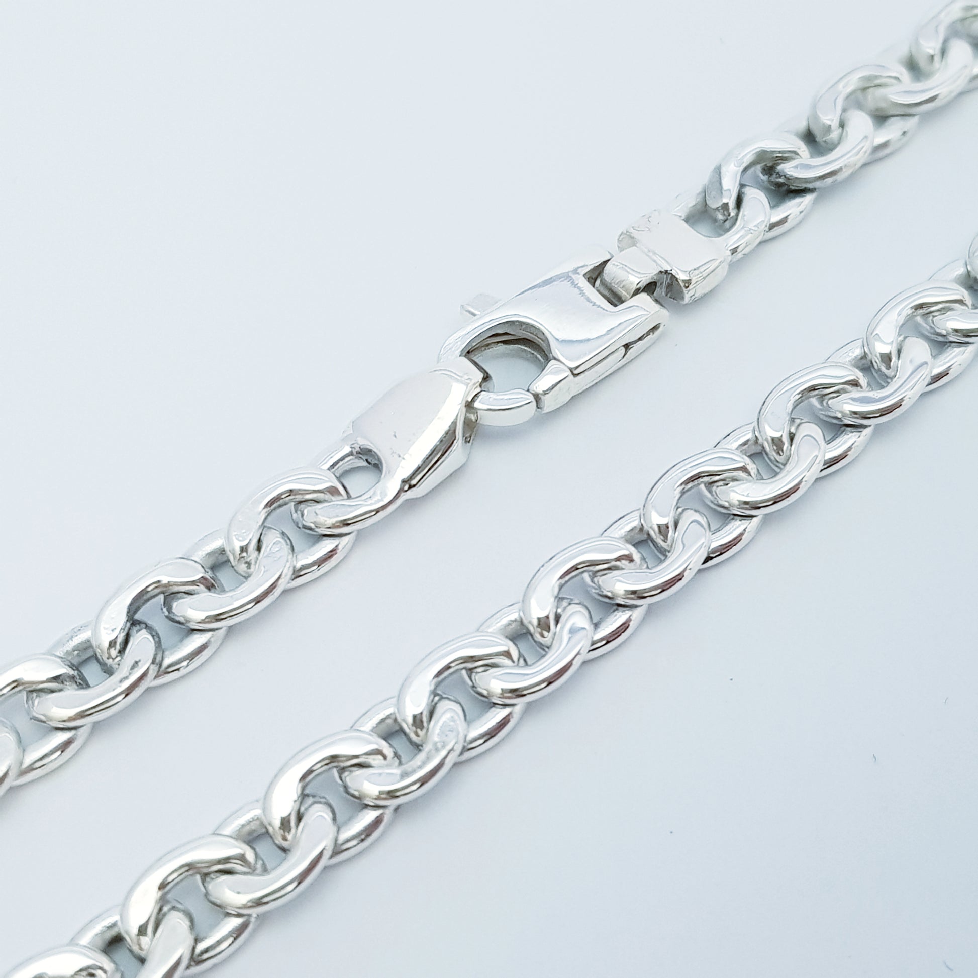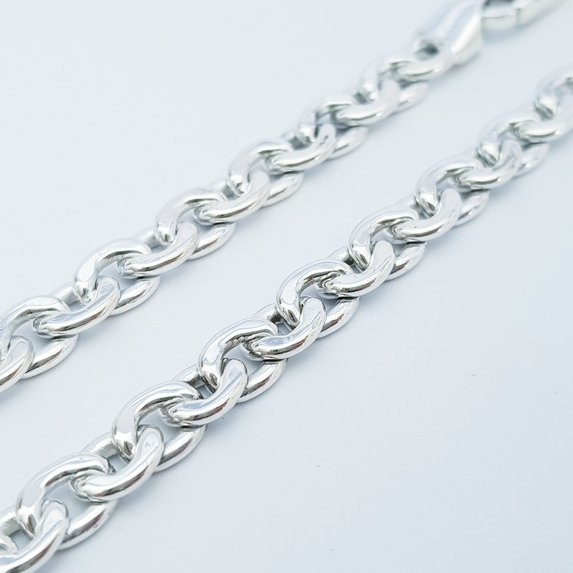 Sterling silver curb chain, hand finished ( no sharp edges) with solid cast end caps. Chain is available in 50 cm (20 inches) or 55cm (22 inch) lengths. Links are 3mm wide and 1.8mm deep.