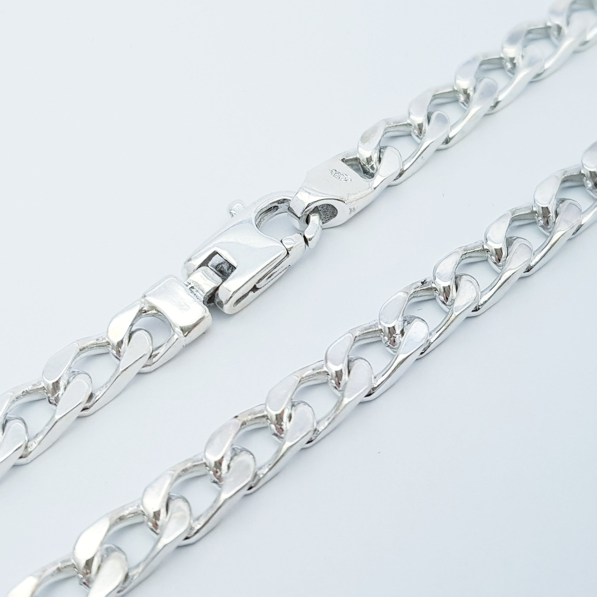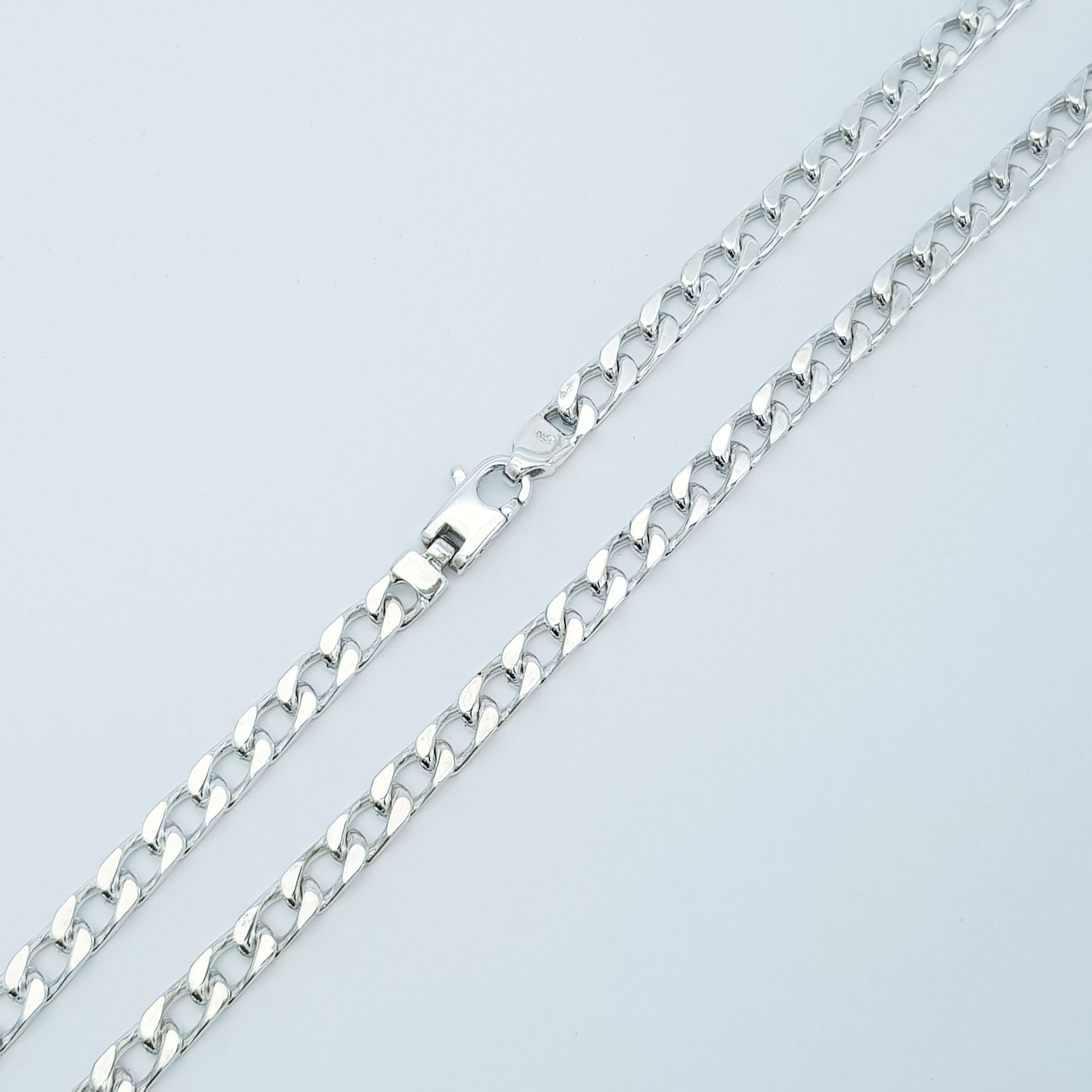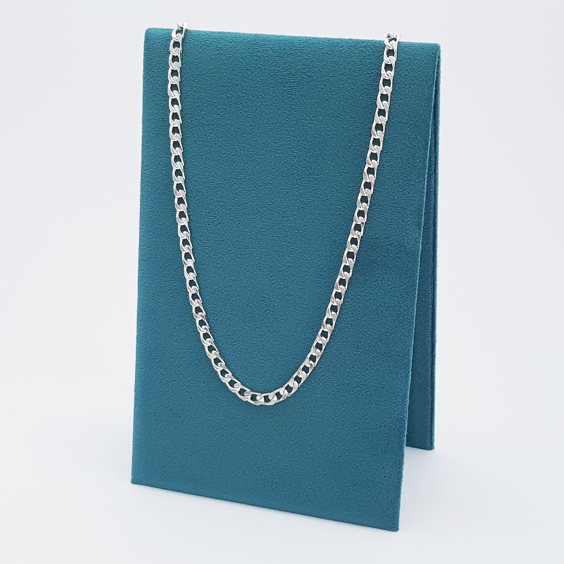 Sterling silver curb chain, hand finished ( no sharp edges) with solid cast end caps. Chain is available in 50 cm (20 inches) or 55cm (22 inch) lengths. Links are 5mm wide and 2.4mm deep.